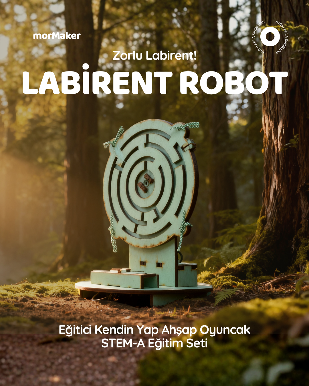 Labirent Robot Eğitici Kendin Yap Ahşap Oyuncak Hareketli STEM-A Eğitim Seti | Algoritma Oyunu
