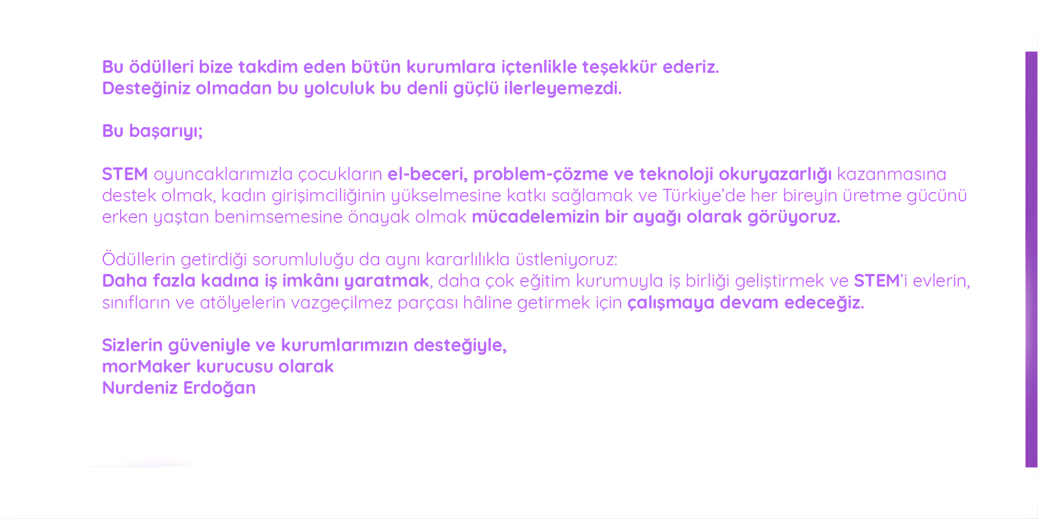 morMaker, 2025 yılında Yükselen Yıldız Kategorisi ödülünün sahibi olarak eğitim teknolojileri alanındaki yenilikçi yaklaşımıyla öne çıktı.