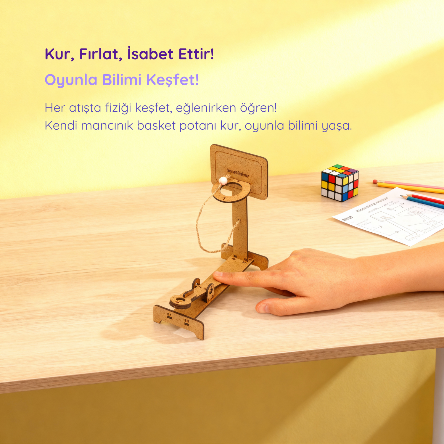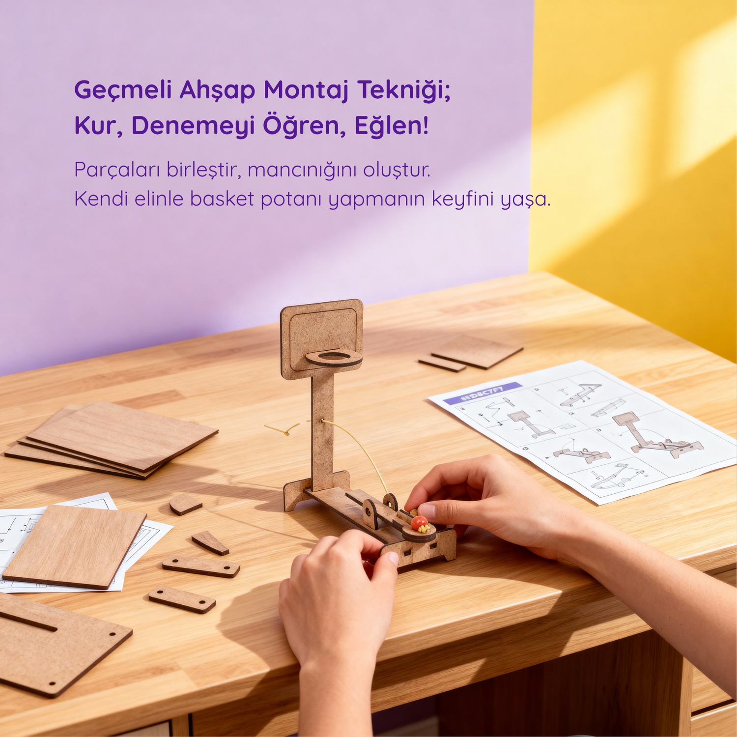 Ahşap Mancınık Basket Potası | Eğitici Kendin Yap Ahşap Oyuncak | STEM-A Eğitim Seti