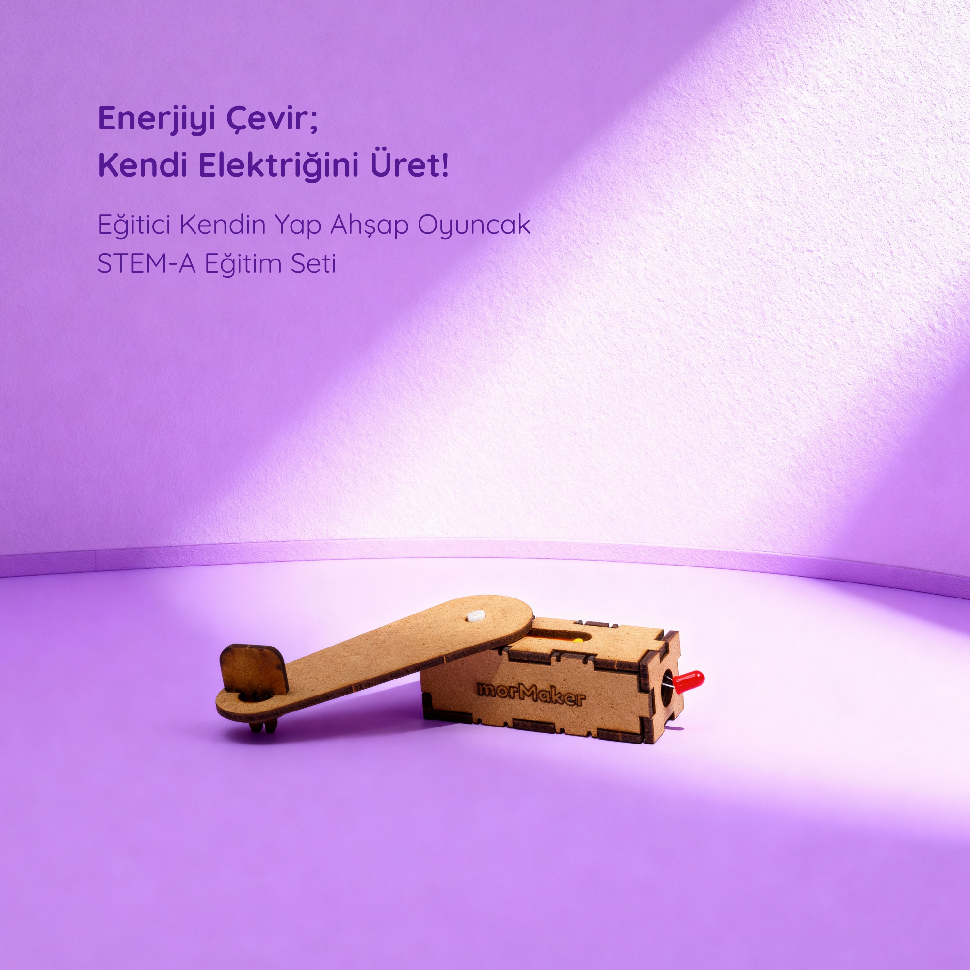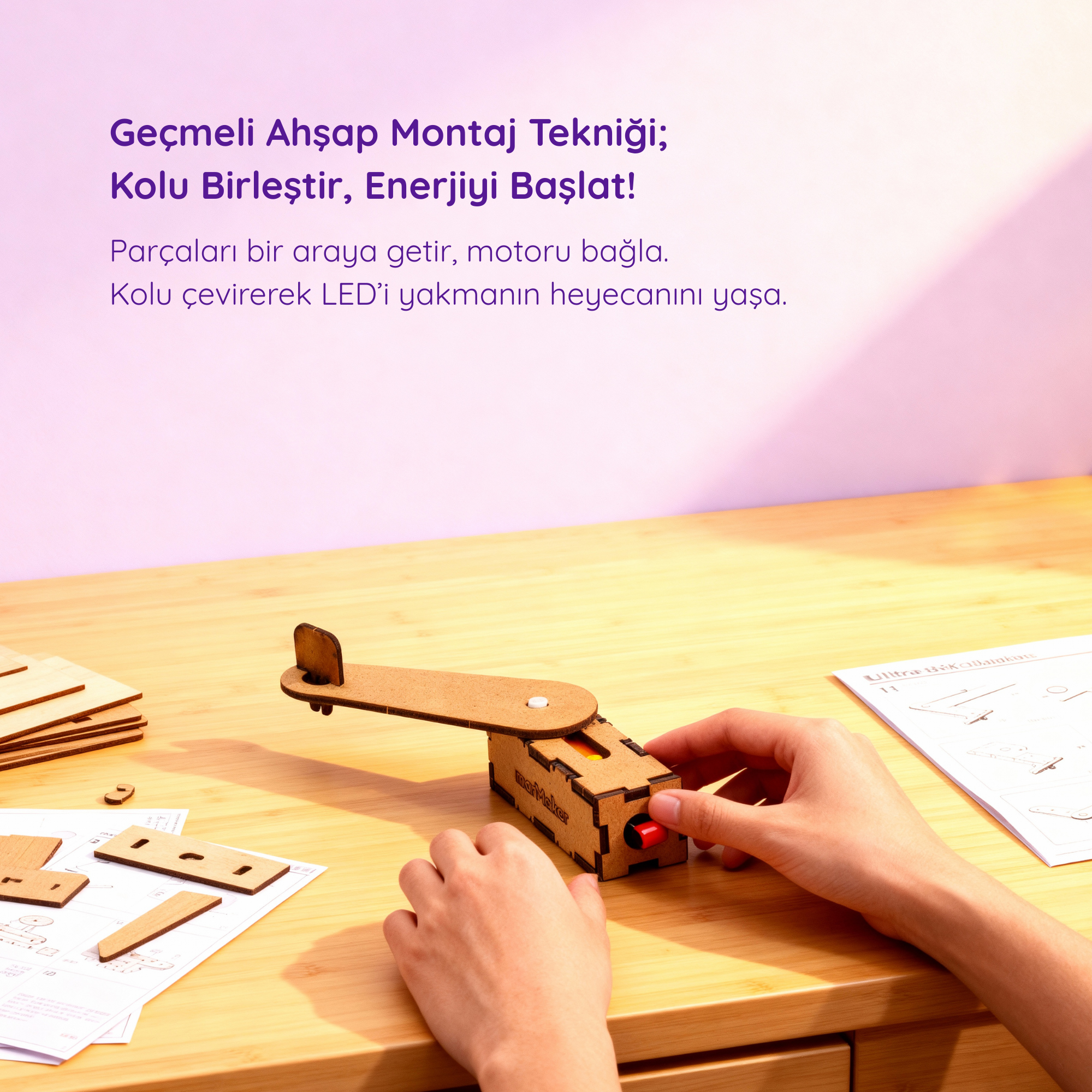 Manuel Dinamo Seti (Çevir Elektrik Üret) | Enerji Dönüşümü Deneyi | Kendin Yap Ahşap Oyuncak | STEM-A Eğitim Seti