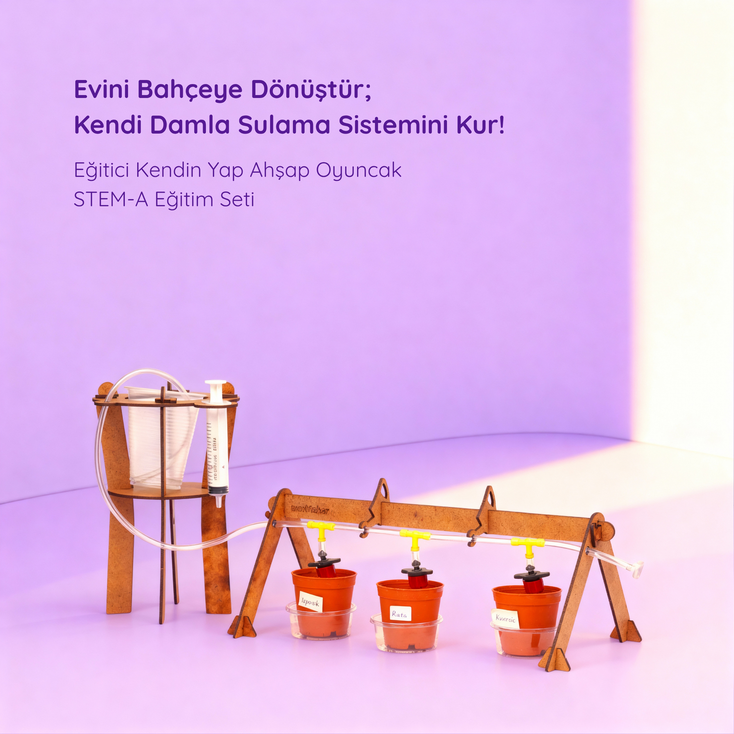Çiftçilik Seti | Kendin Yap Ahşap STEM-A Eğitim Seti | Damla Sulama Sistemiyle Kendi Bahçeni Kur!