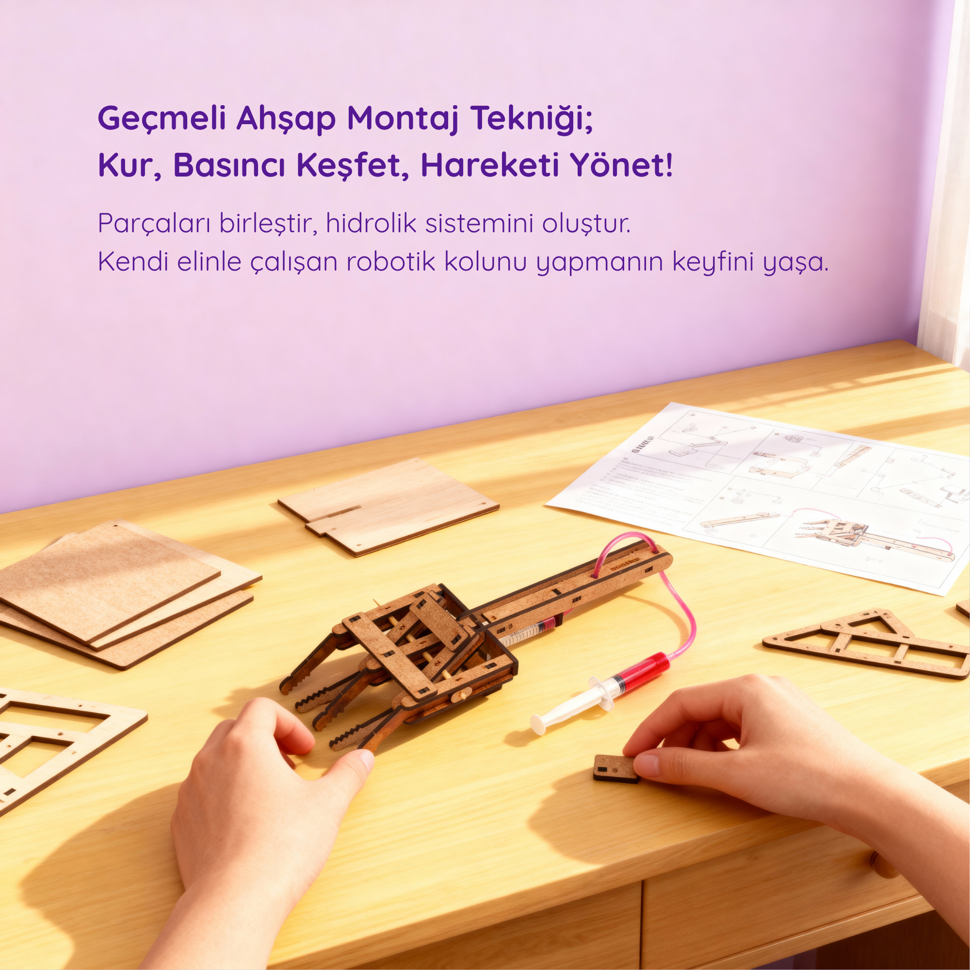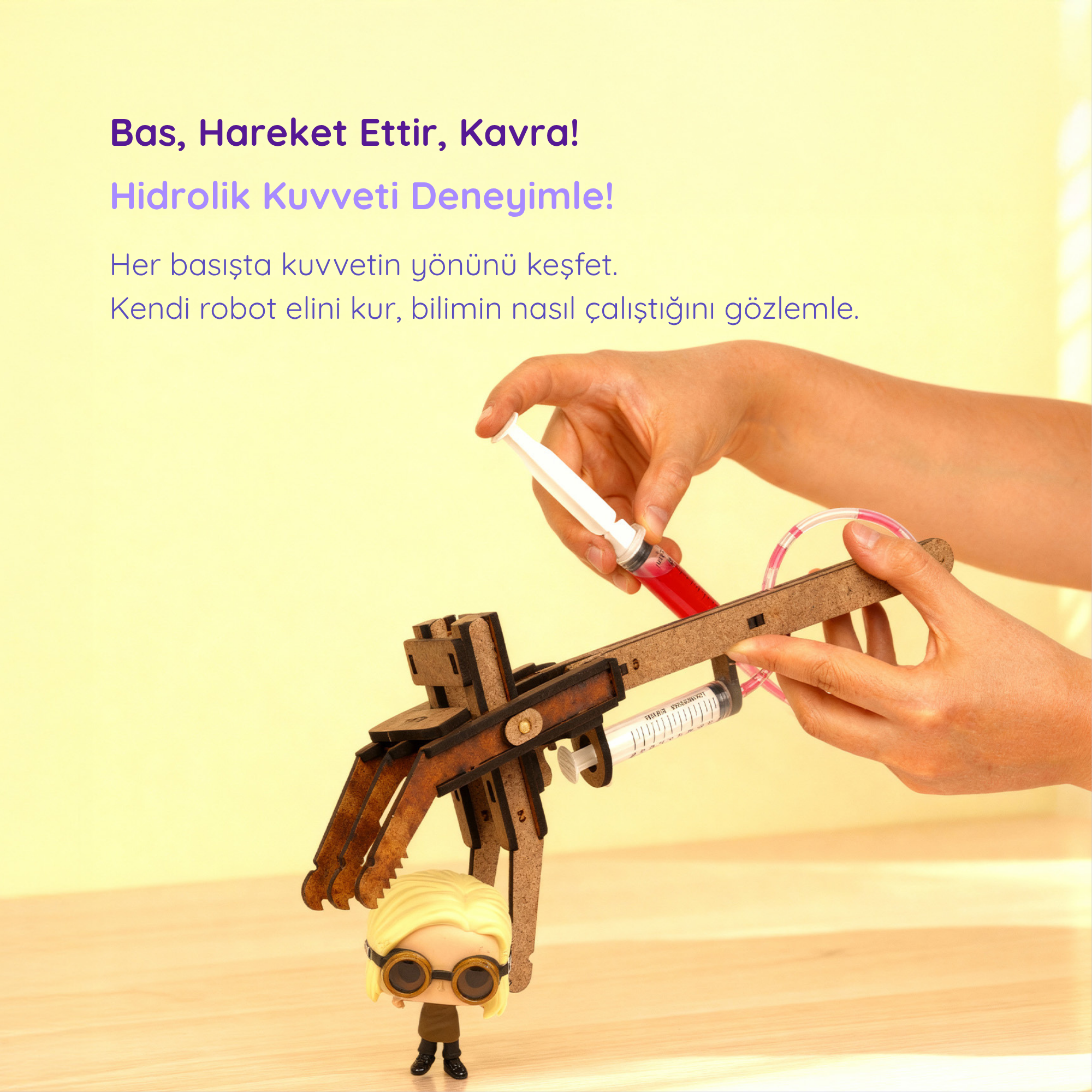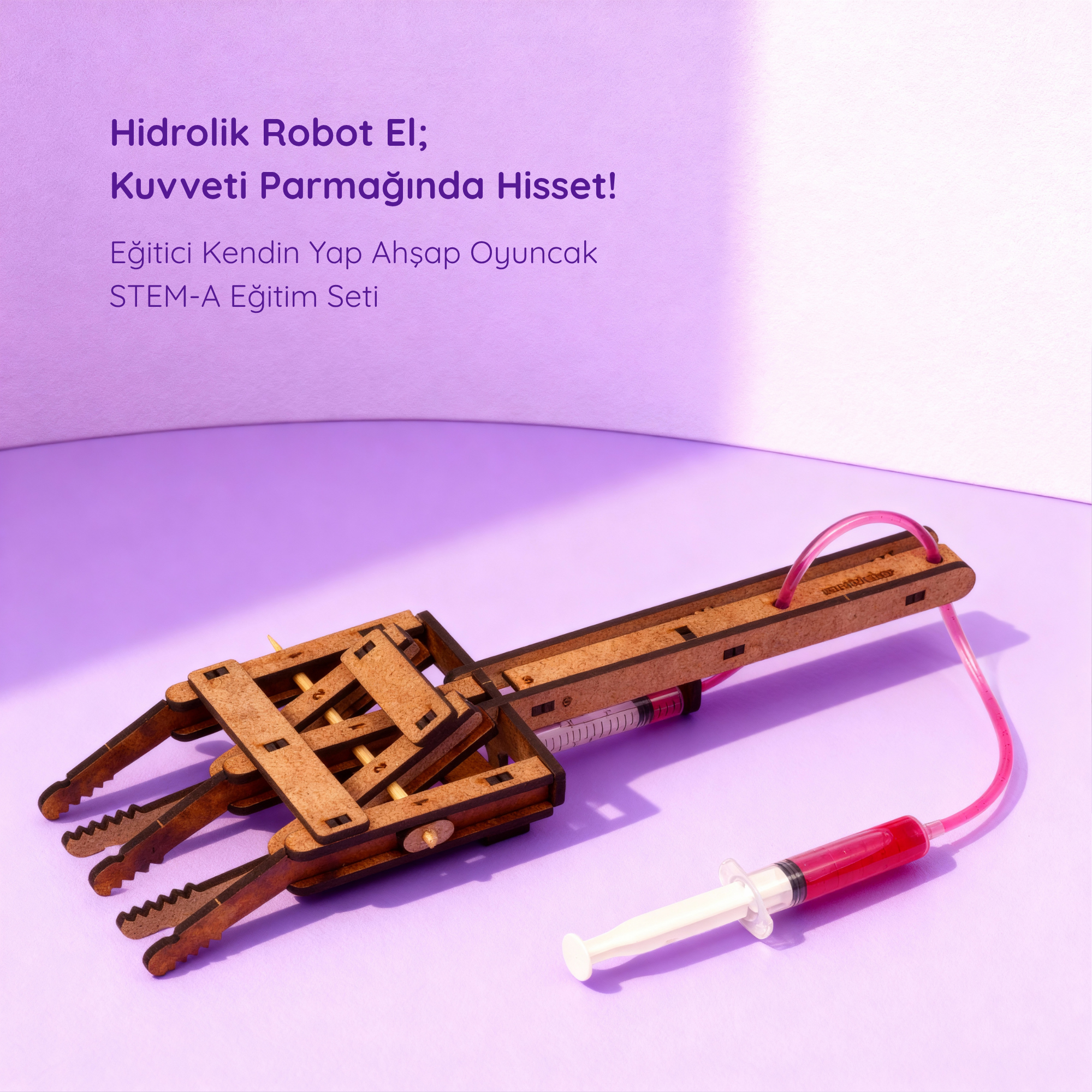 Hidrolik Robot El Kendin Yap Ahşap Oyuncak STEM-A Eğitim Seti