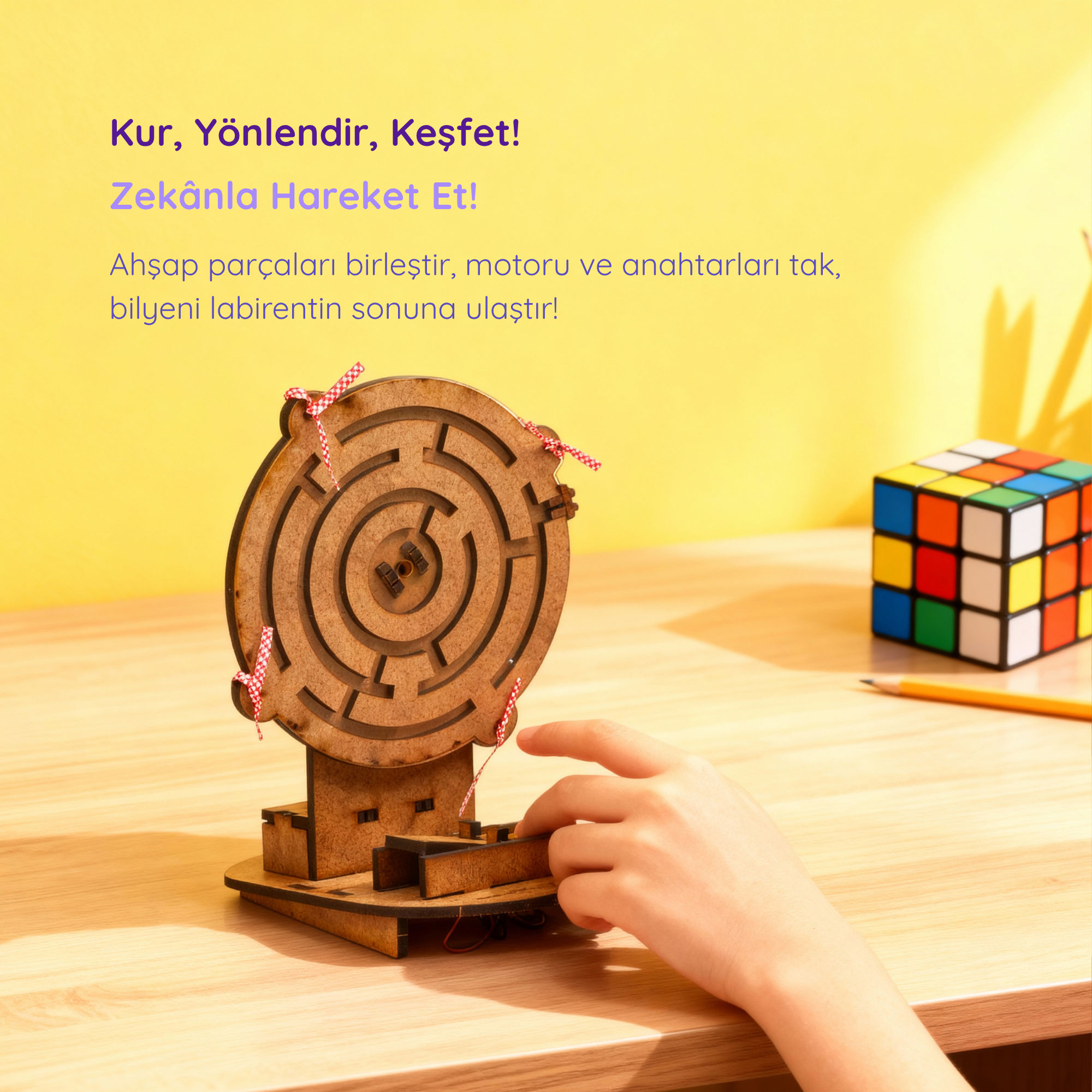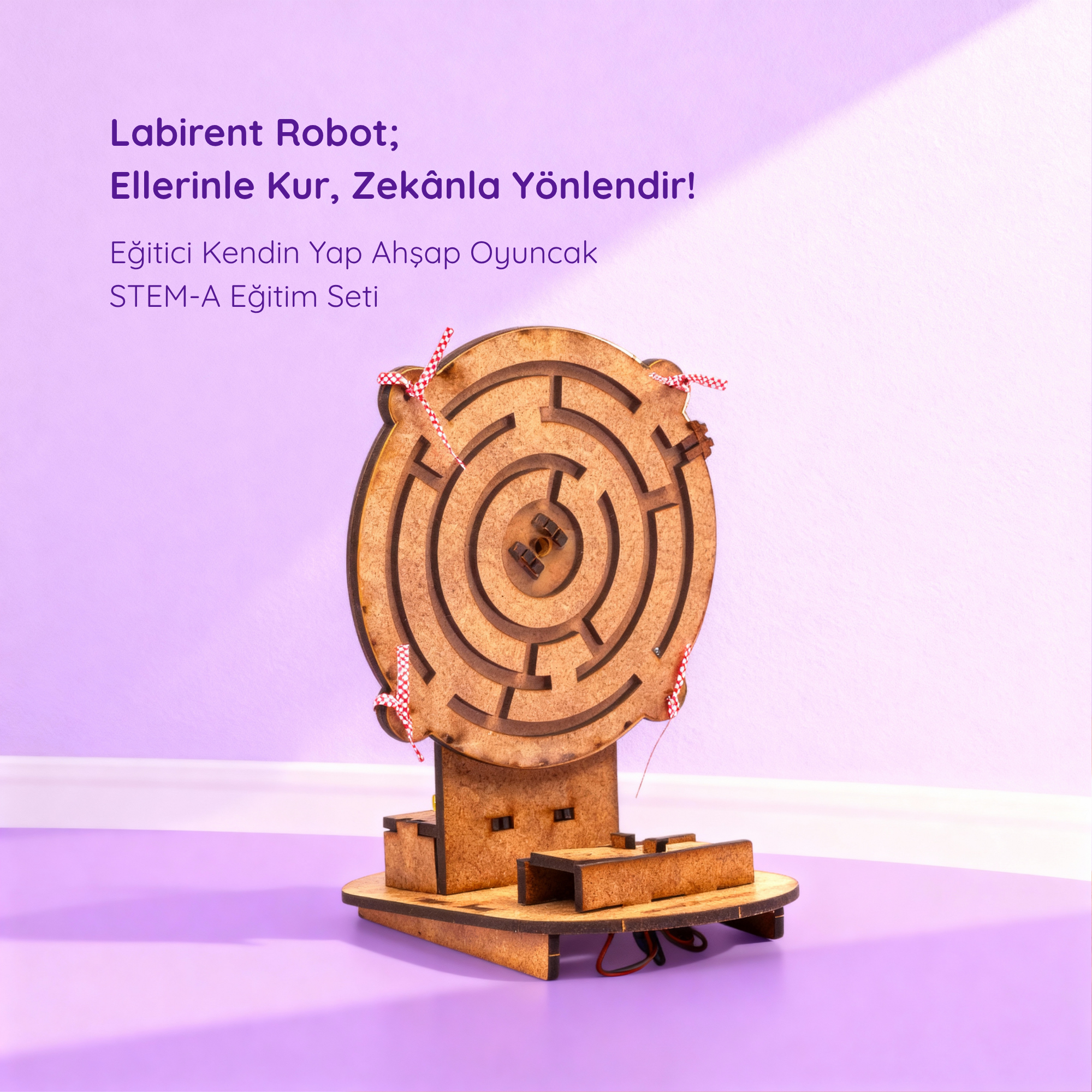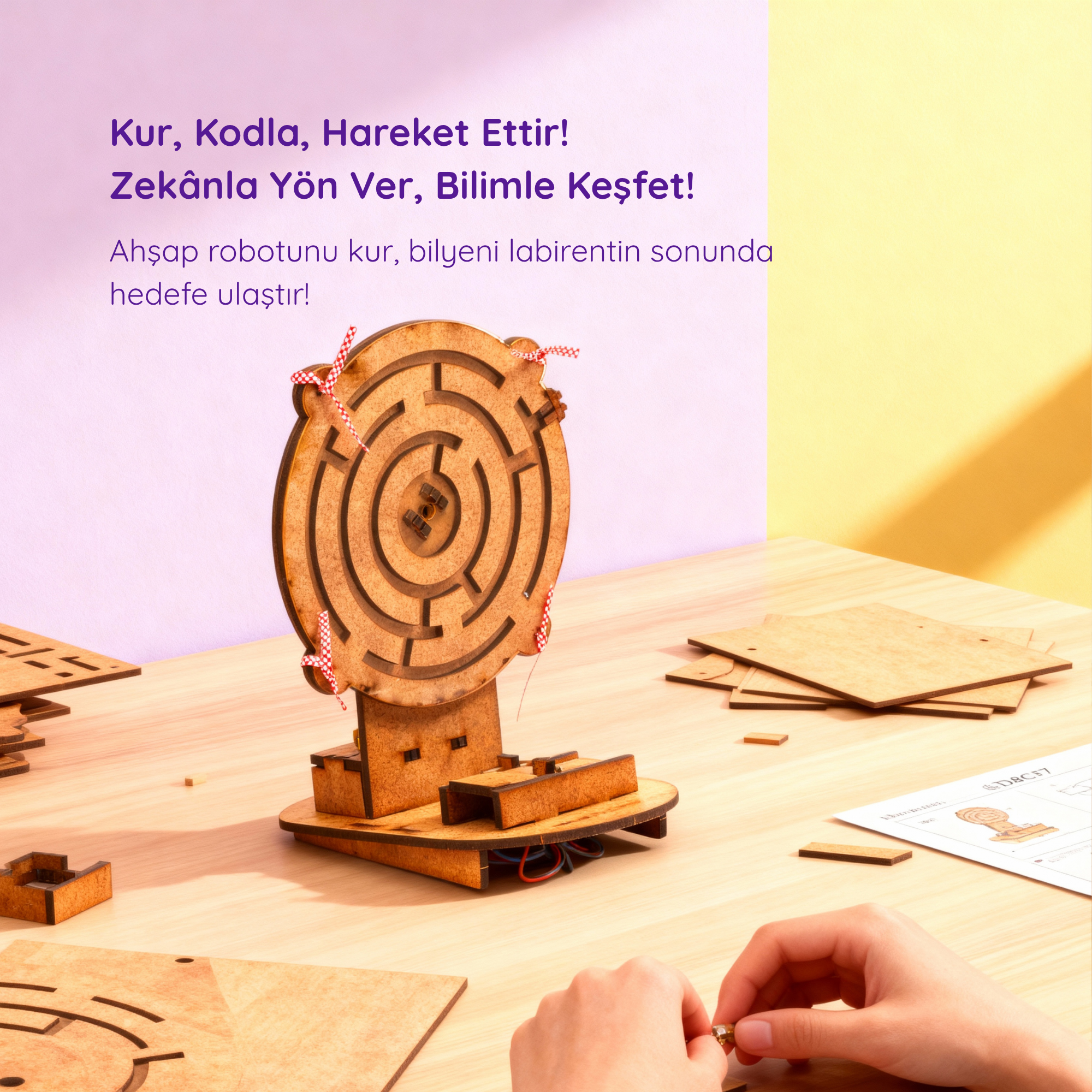 Labirent Robot Eğitici Kendin Yap Ahşap Oyuncak Hareketli STEM-A Eğitim Seti | Algoritma Oyunu