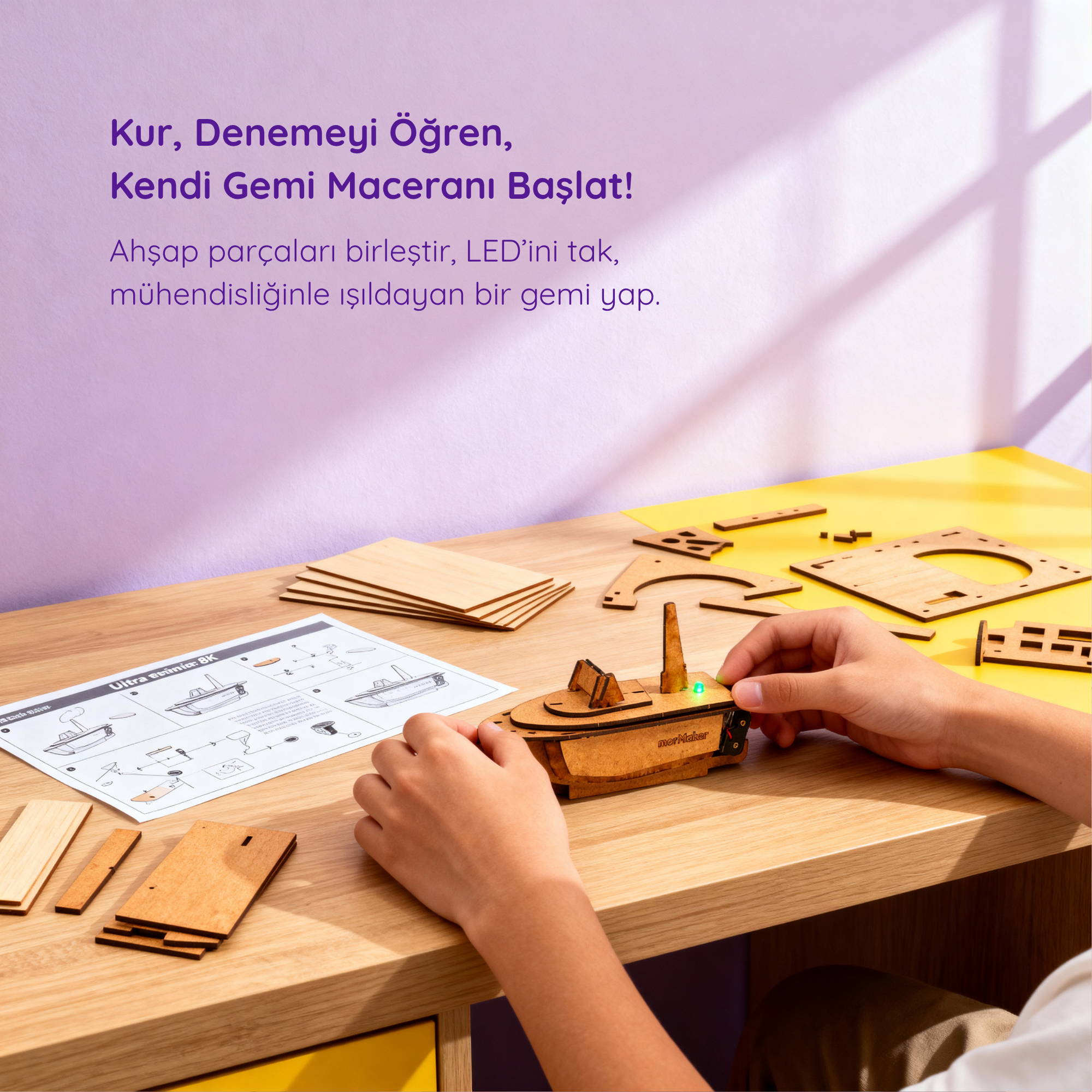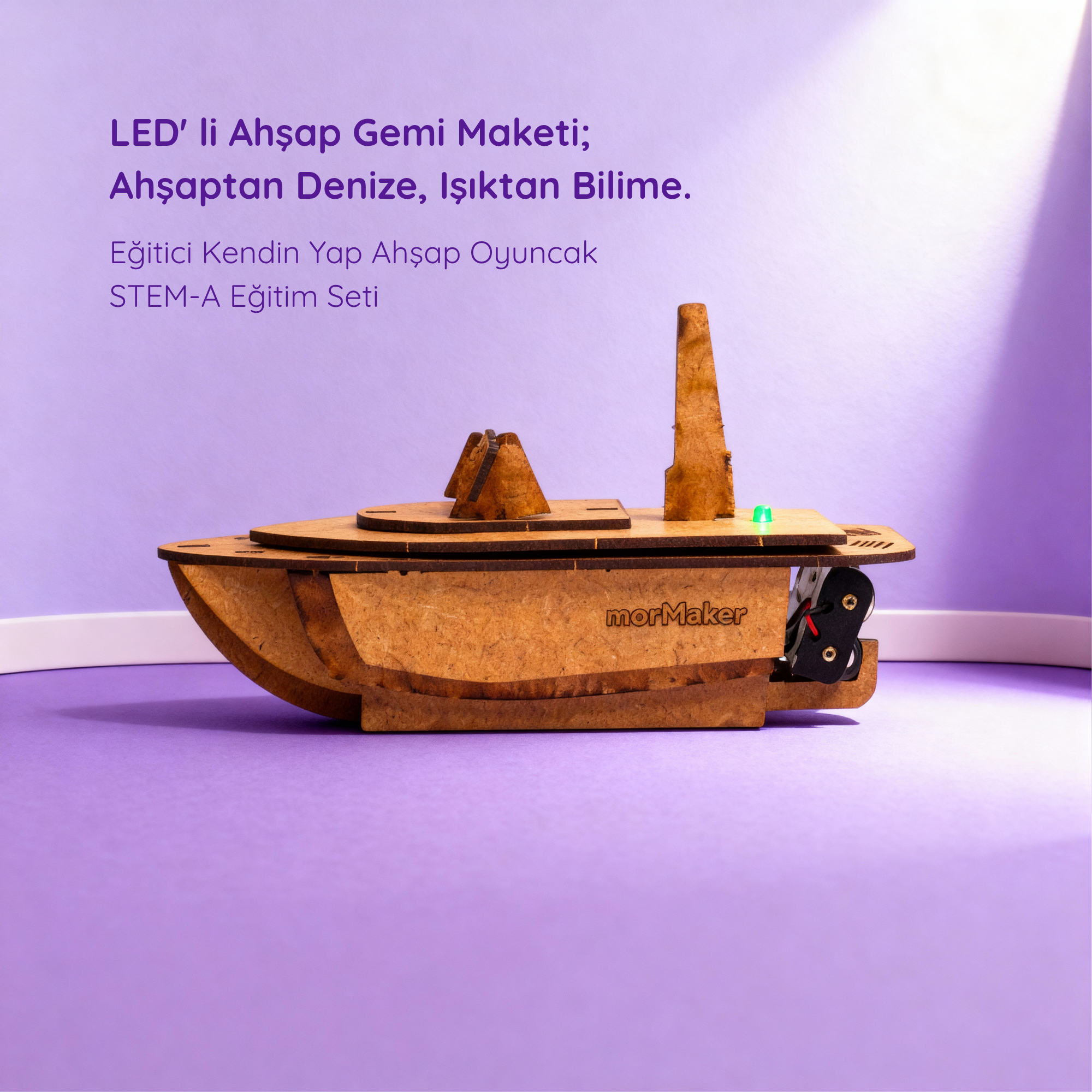LED' li Ahşap Gemi Maketi | İnsansız Deniz Aracı | Kendin Yap Ahşap Oyuncak | STEM-A Eğitim Seti