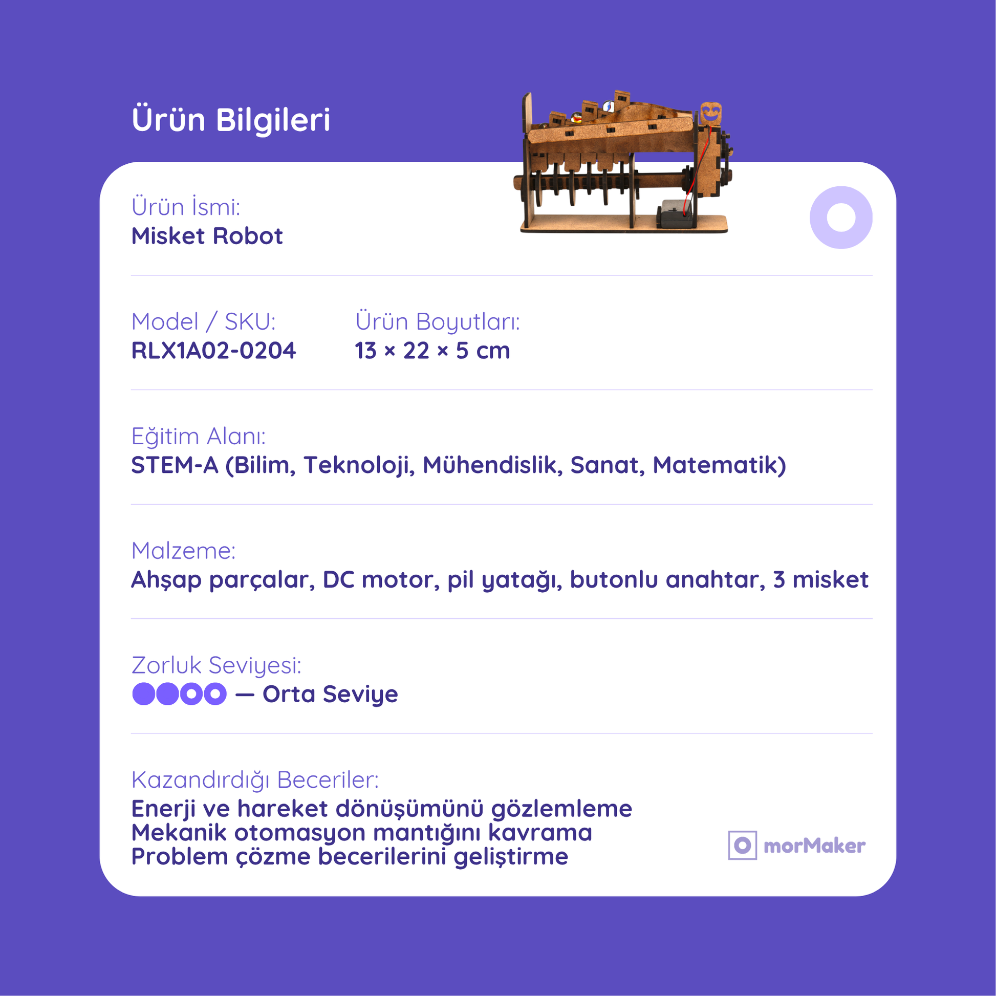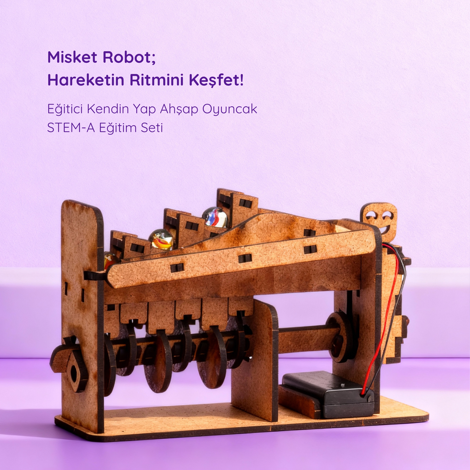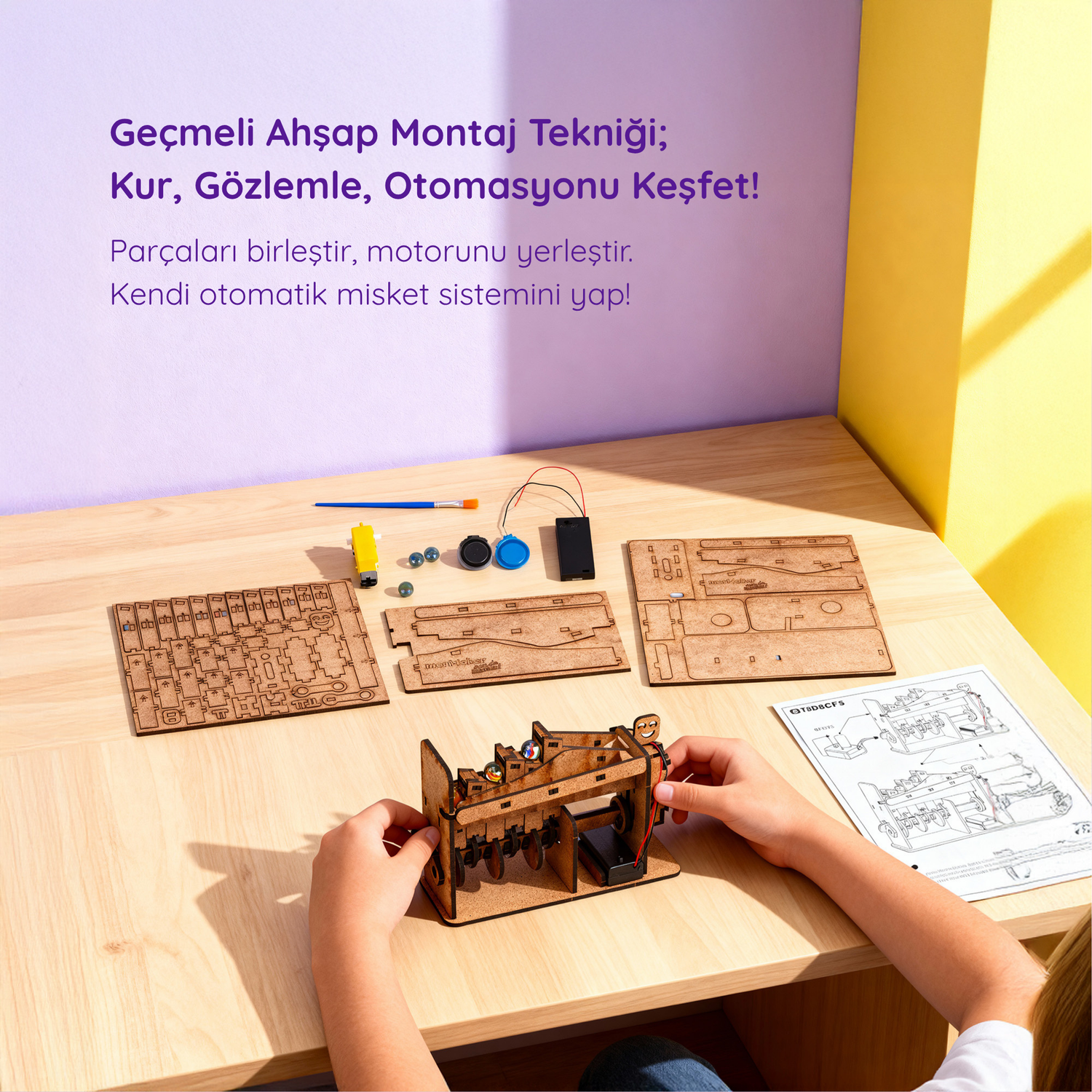 Misket Robot DC Motorlu Ahşap Oyuncak STEM-A Eğitim Seti | Çocuklar için Otomasyon Sistemi