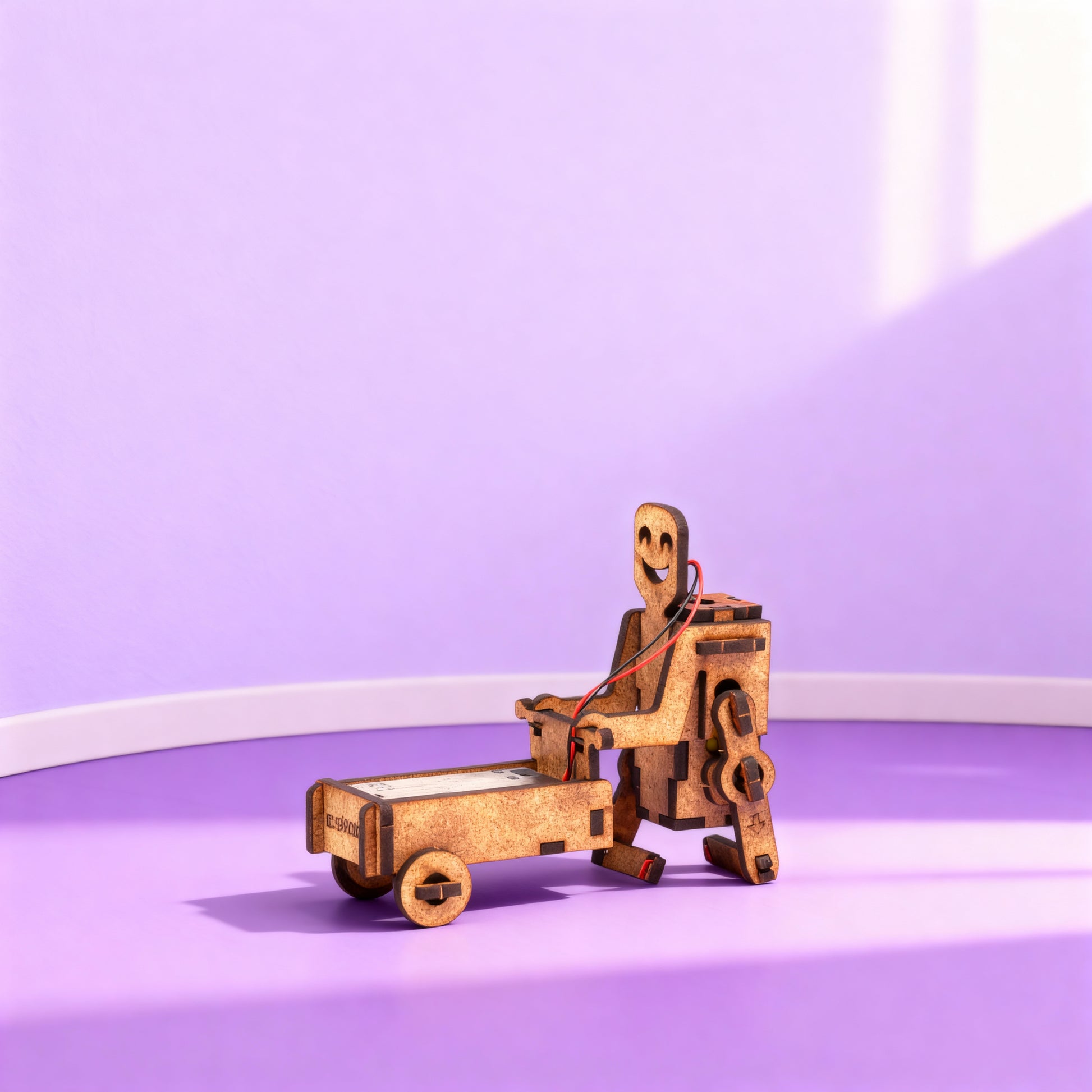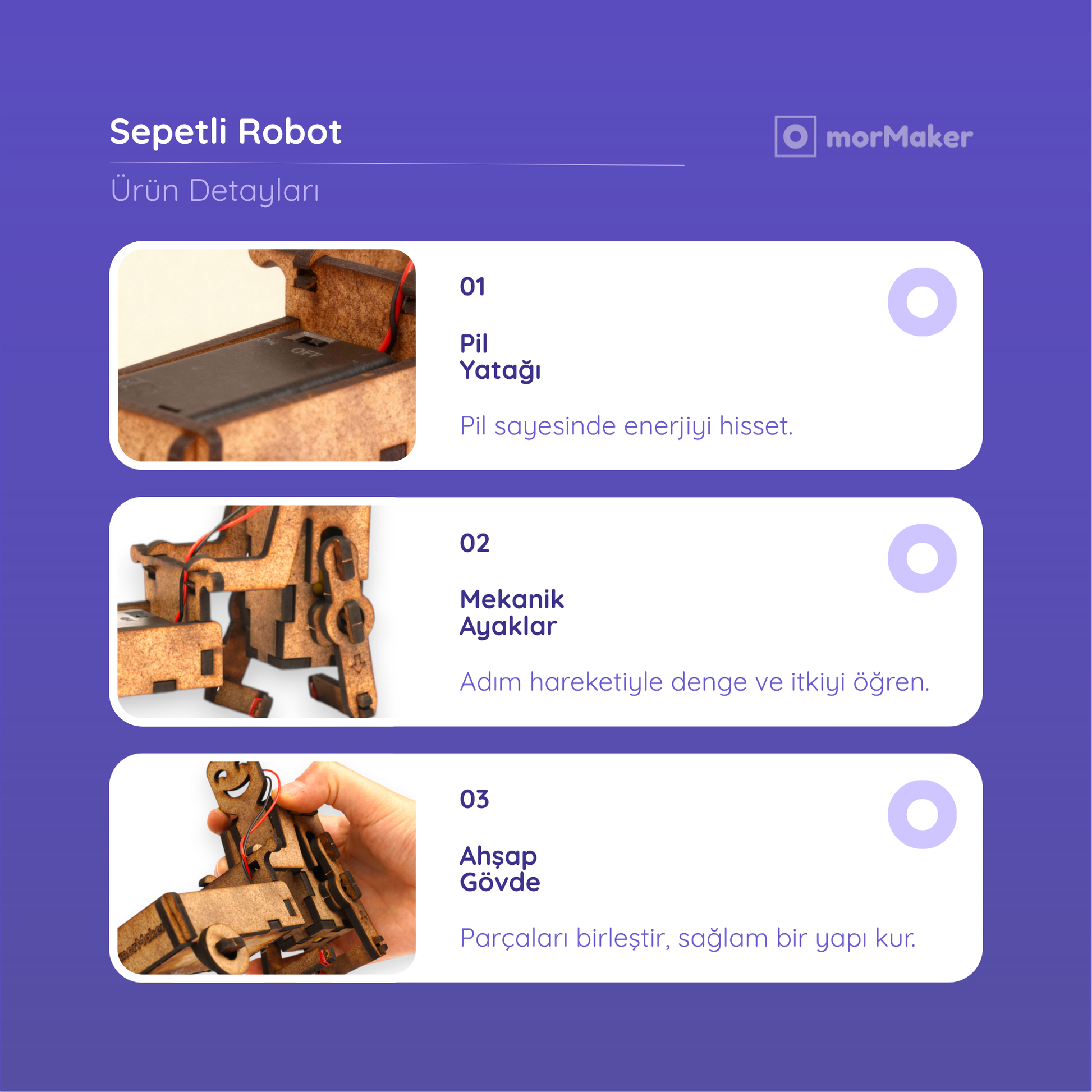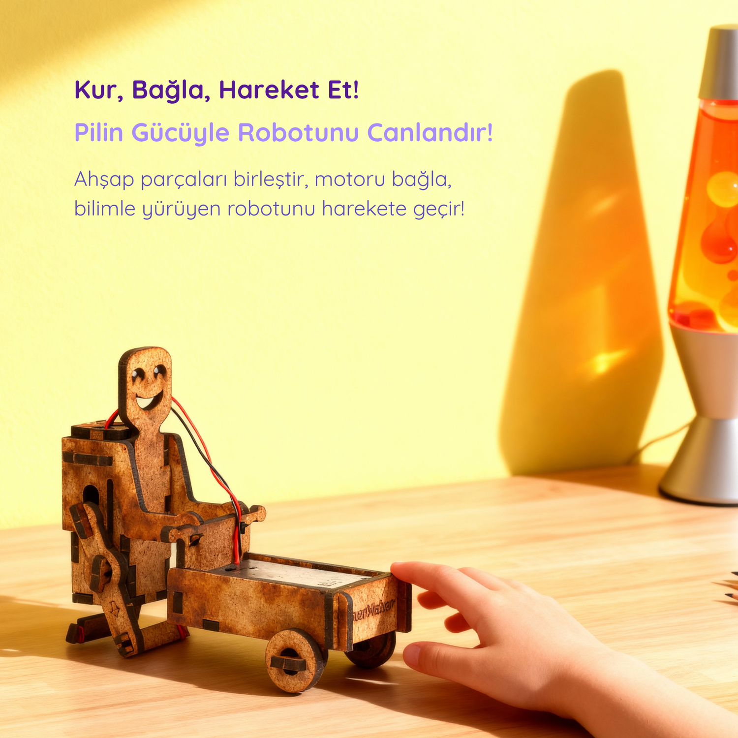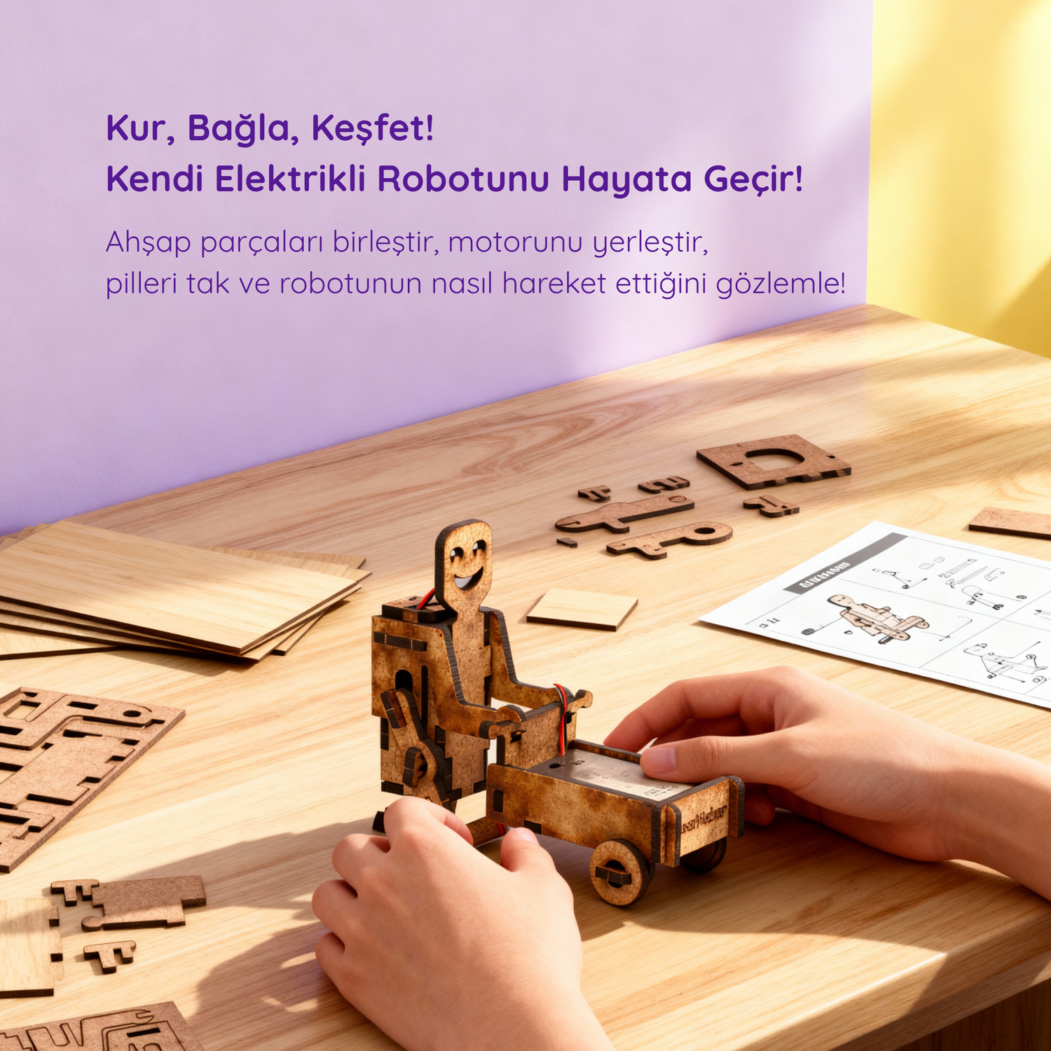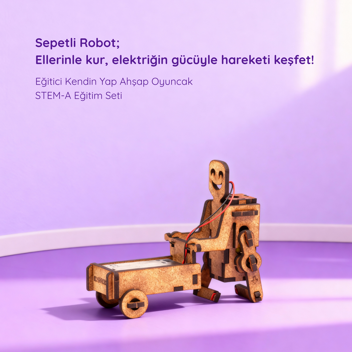 Sepetli Robot DC Motorlu Ahşap Oyuncak STEM-A Seti
