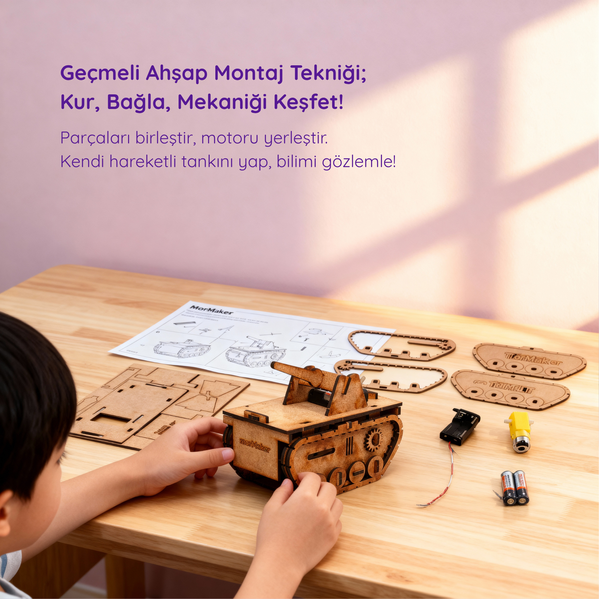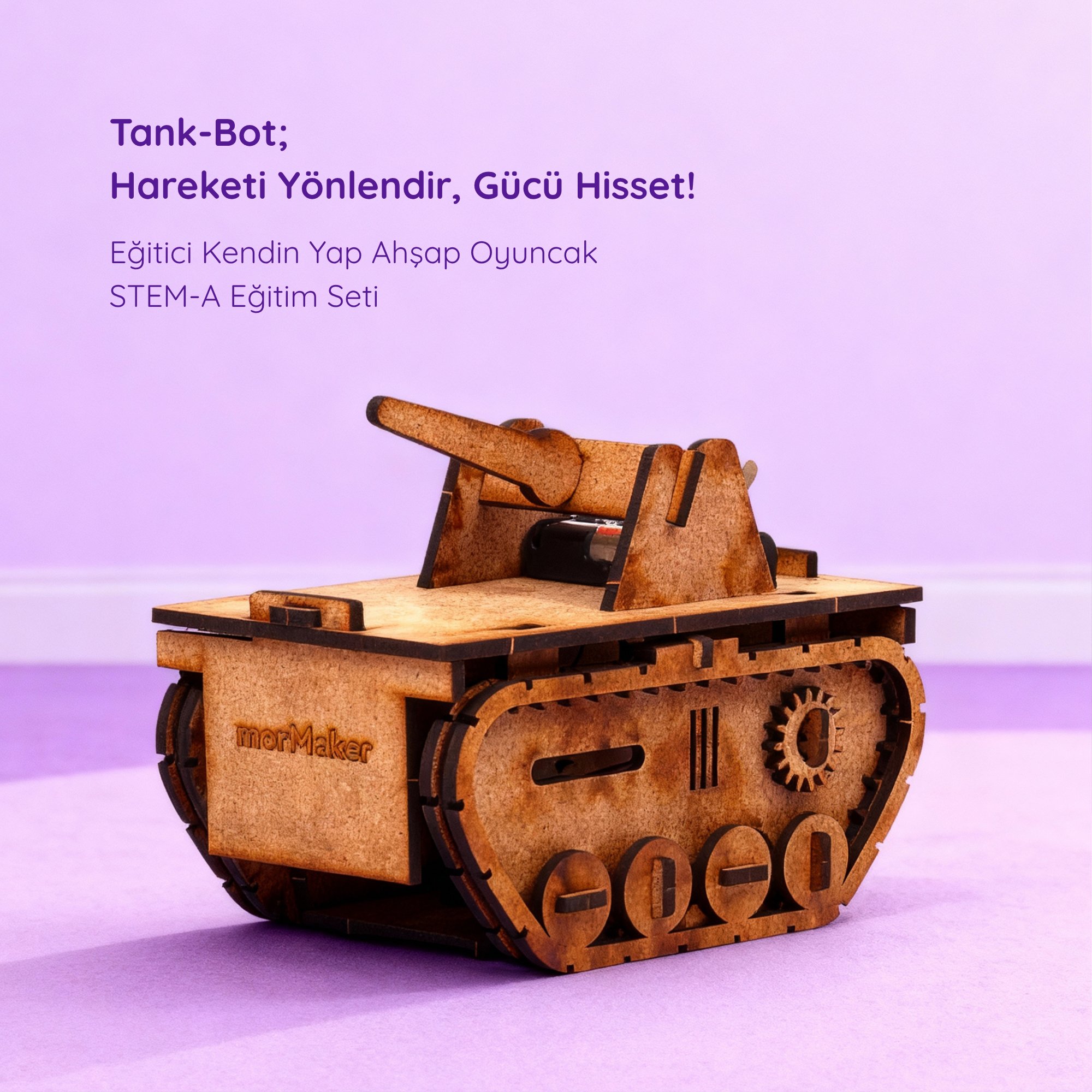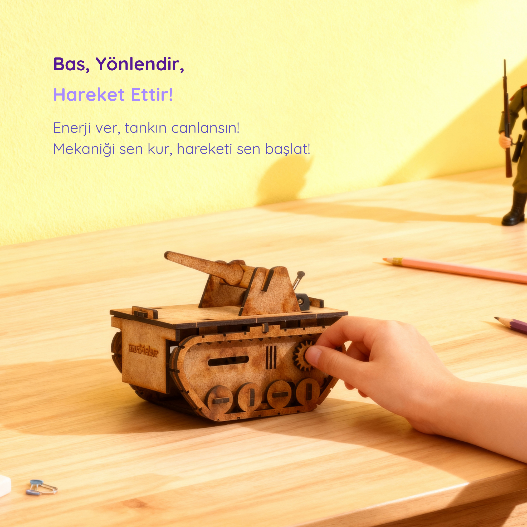 Haraketli Ahşap Oyuncak Tank | Kendin Yap Ahşap Oyuncak | STEM-A Eğitim Seti | Tank-Bot