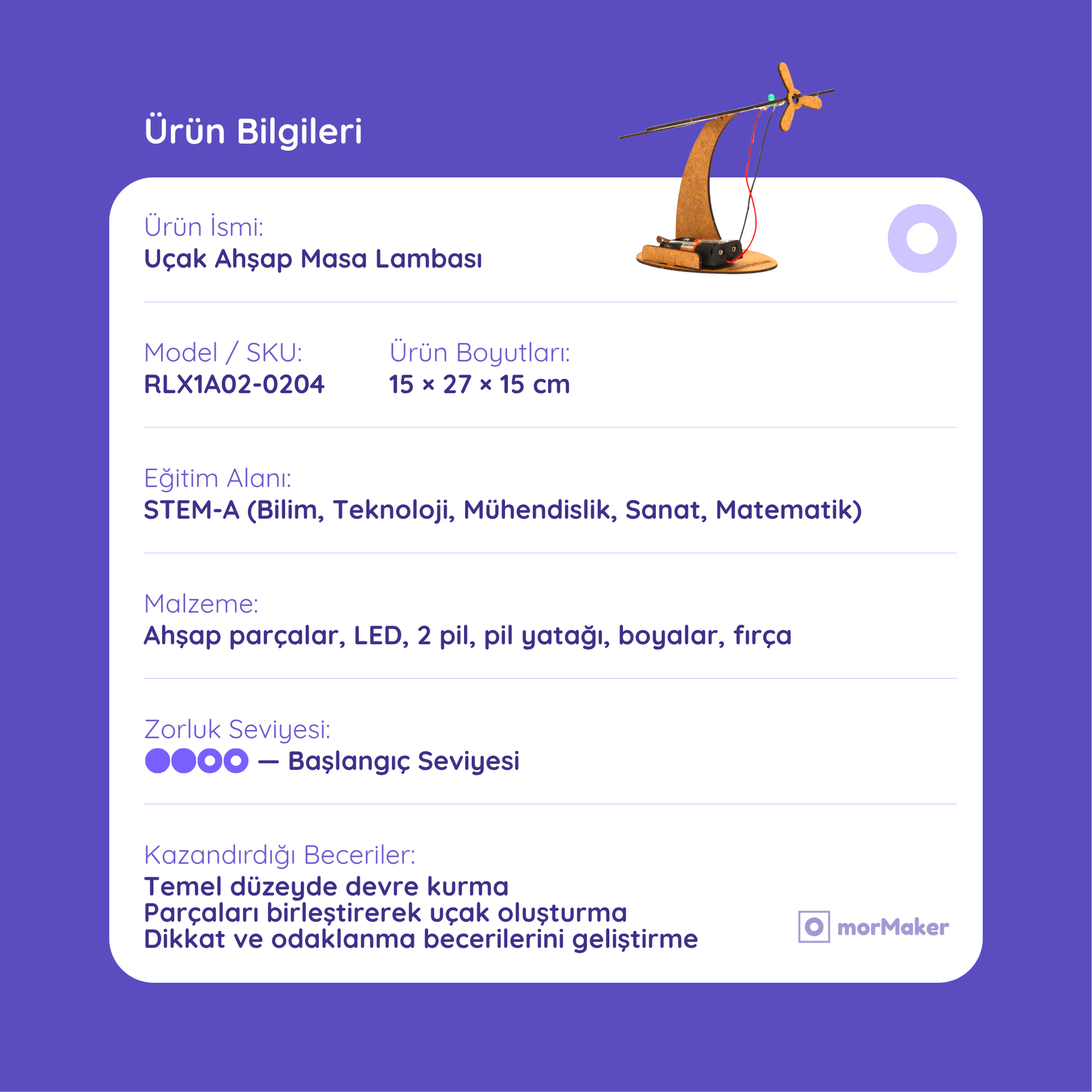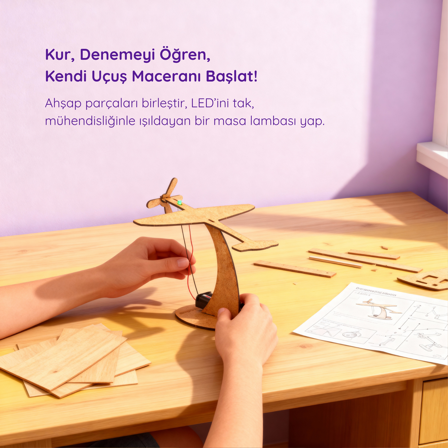 Uçak Masa Lambası Kendin Yap Ahşap Oyuncak STEM-A Eğitim Seti