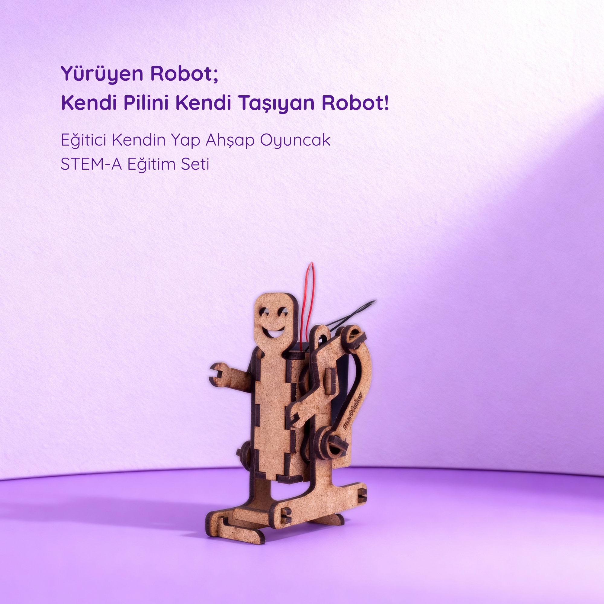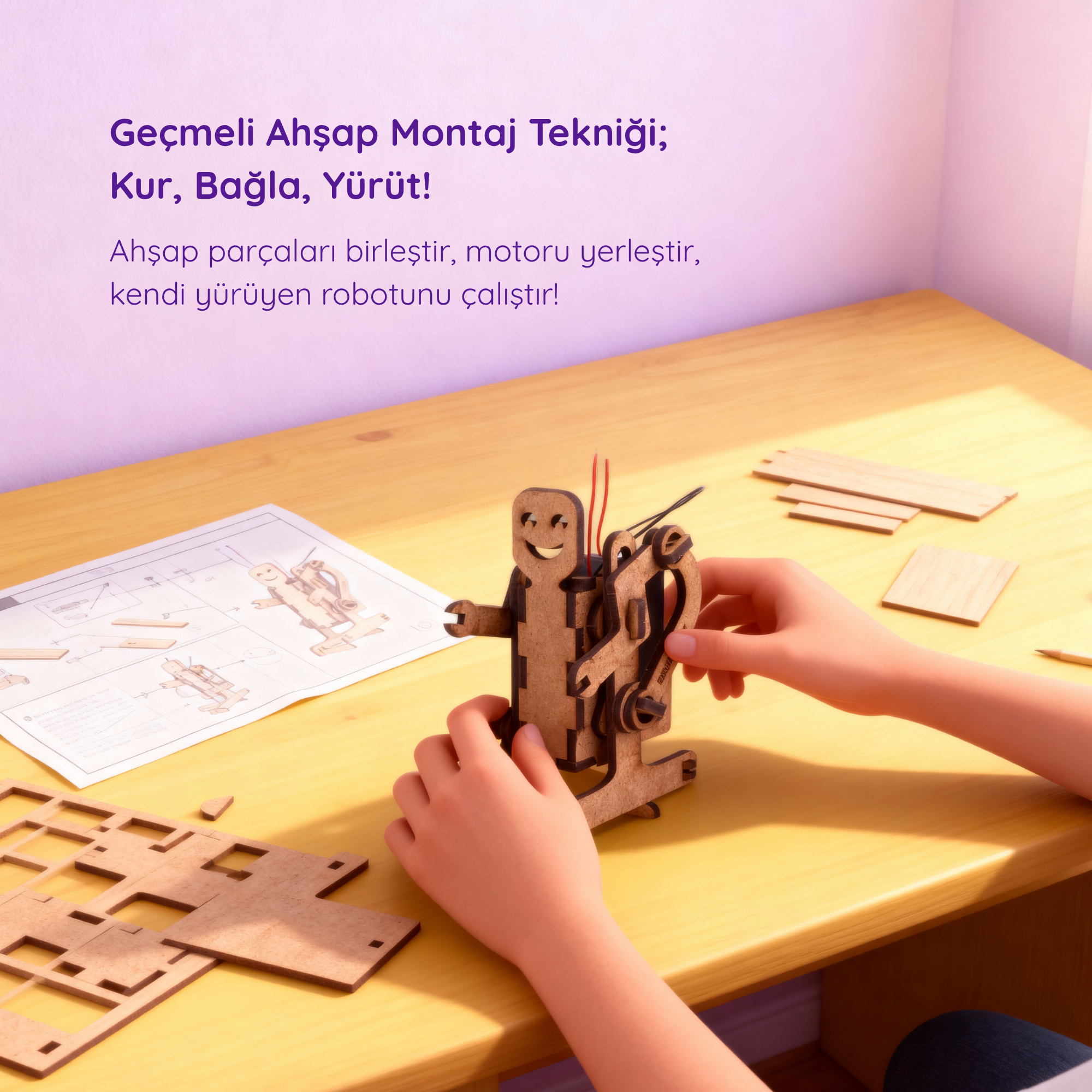 Yürüyen Robot DC Motorlu Ahşap Oyuncak STEM-A Eğitim Seti
