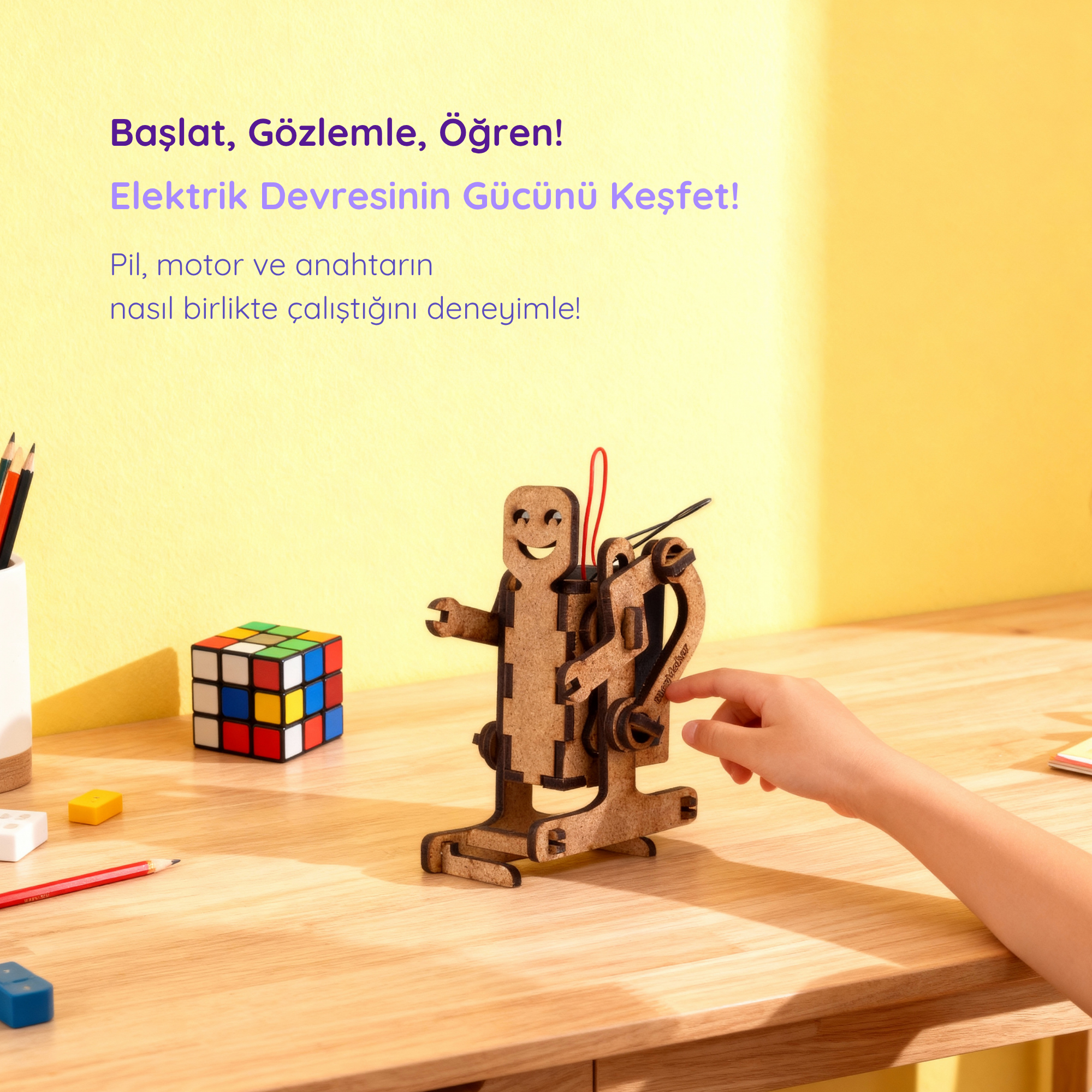 Misket Robot DC Motorlu Ahşap Oyuncak STEM-A Eğitim Seti | Çocuklar için Otomasyon Sistemi